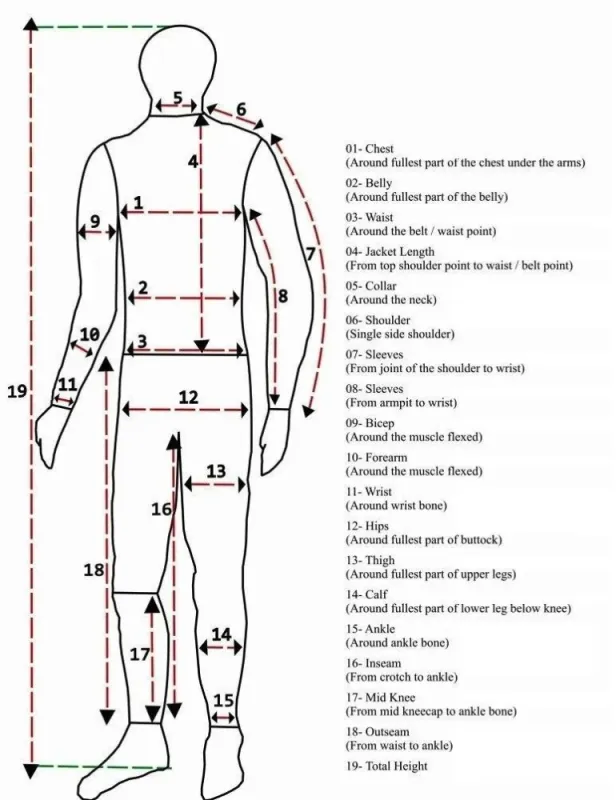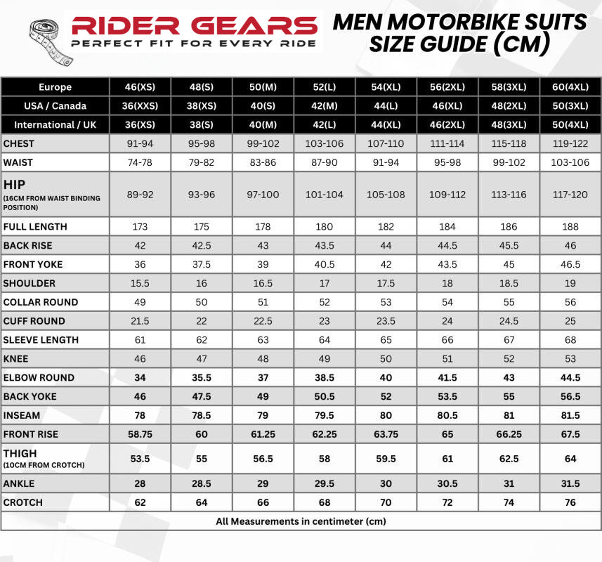 MENS MOTORBIKE SUIT SIZE CHART