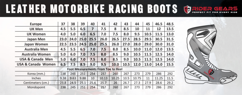 MOTORBIKE BOOTS SIZE CHART